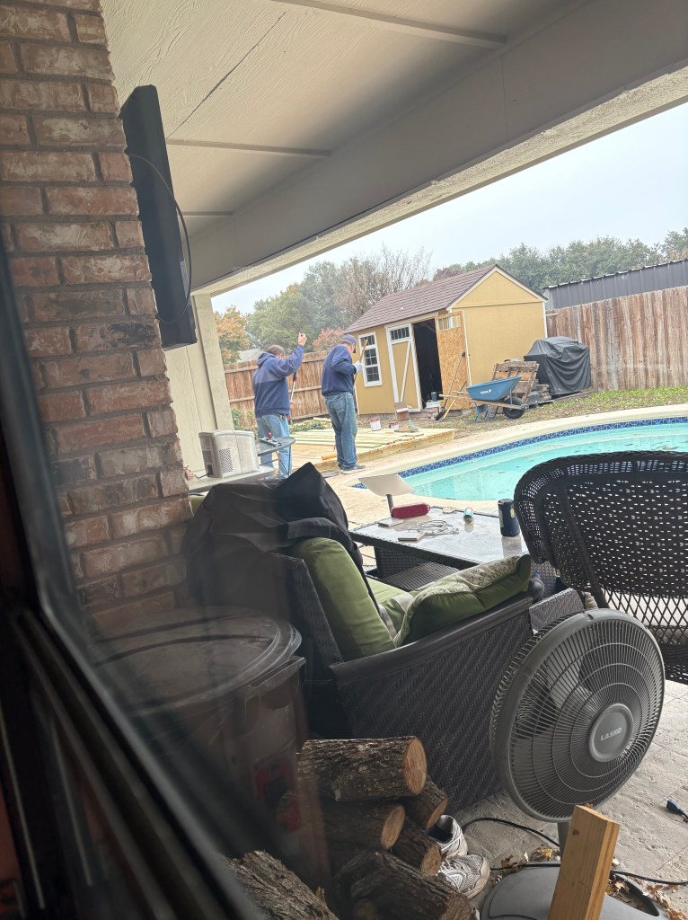 He was able to help Dave staining the boards though. I think he eventually wants to put a pergola or co