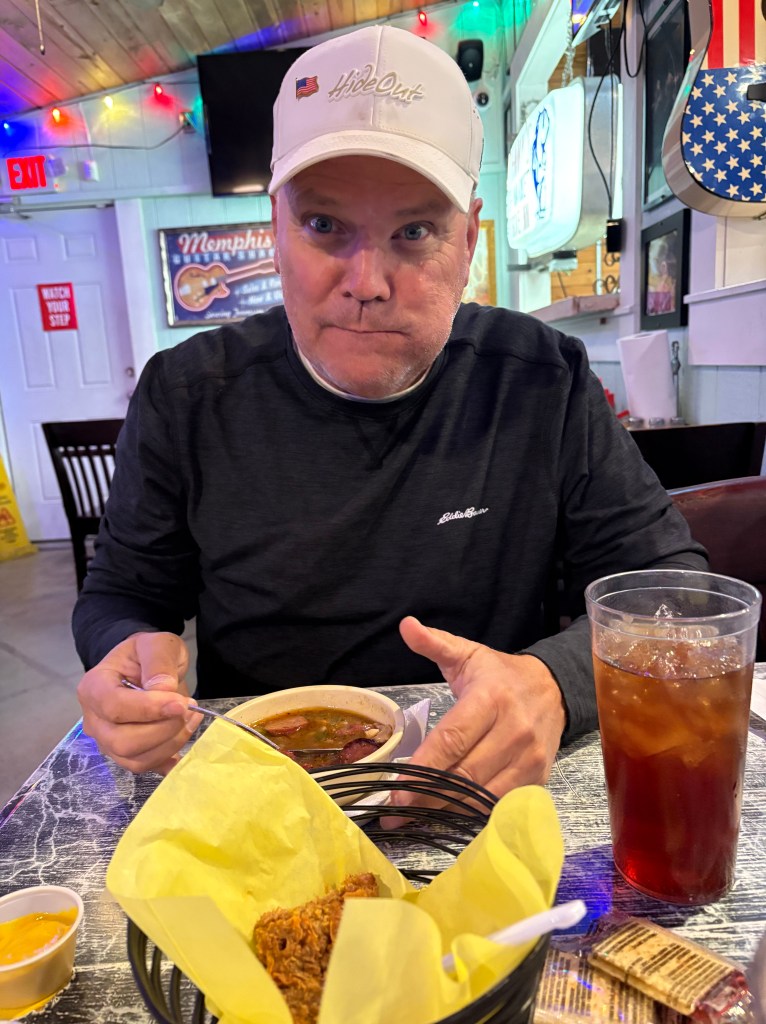 Regardless, Dave took me to the Bayou Cafe for a Boudin ball and a cup of delicious gumbo. OMG, it was sooooo good. But then it hit my stomach and didn’t want to be there! I don’t know if it was too rich or if a spice didn’t agree, but I won’t let it ruin the place for me. Could have been a one-time thing.