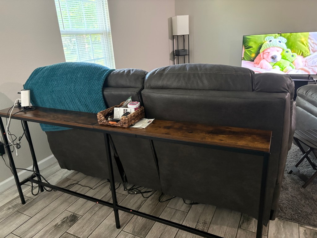 Dave put my couch console table together and I hope he enjoys building furniture because our new desk came today! Slowly but surely, I’ll get this house furnished. 😁 My money, his money, and our money, lol!